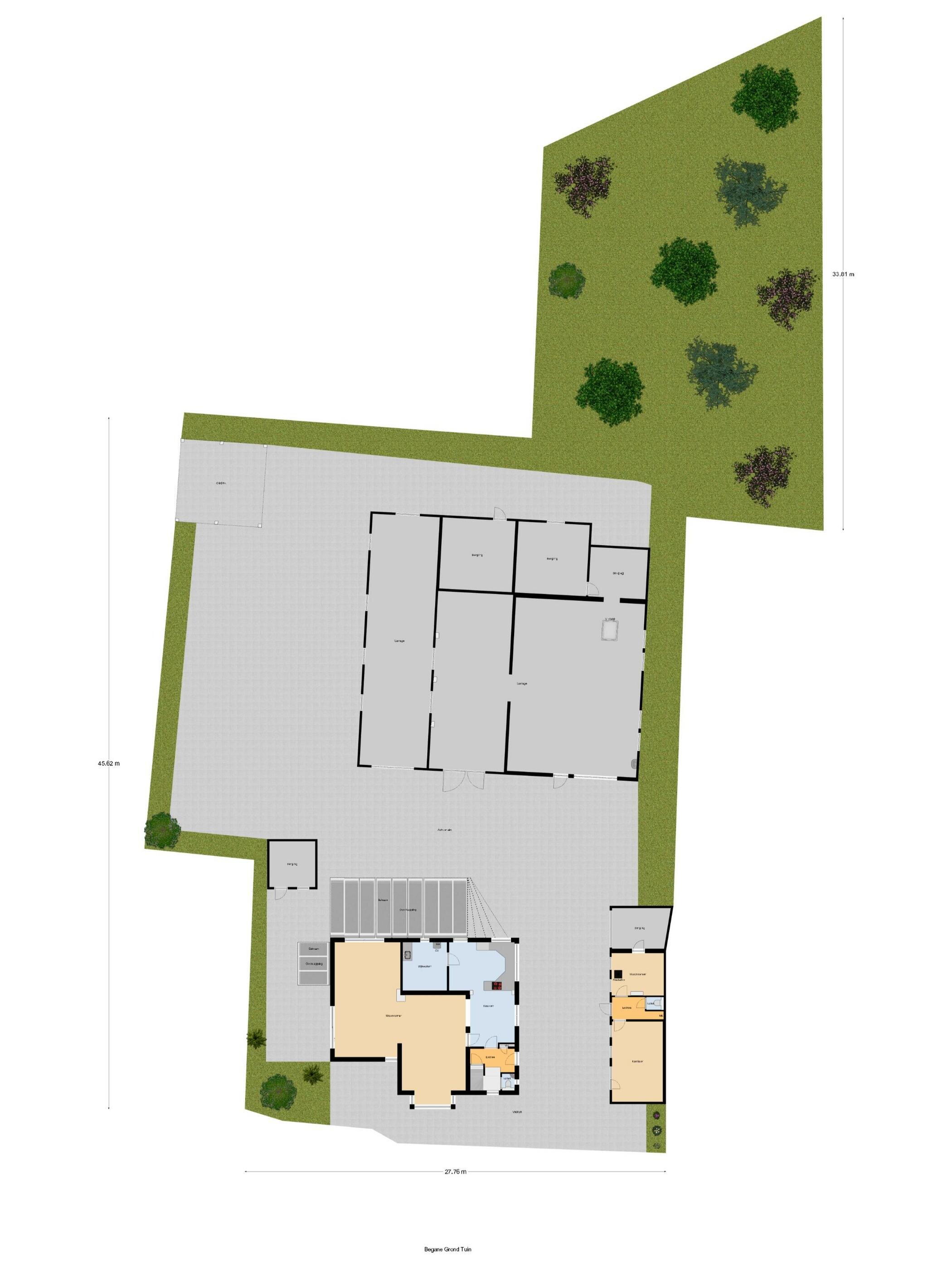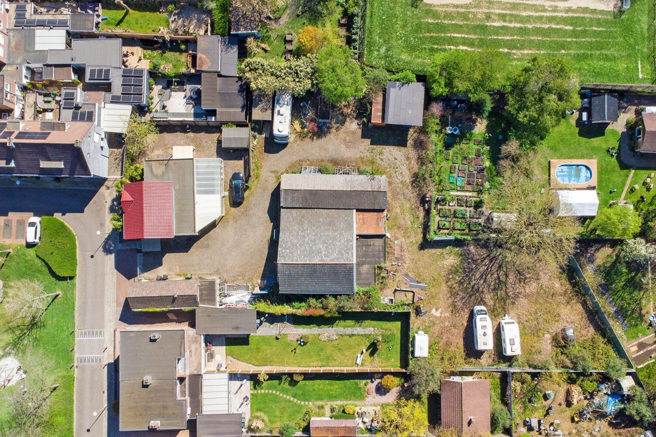 Het perceel is royaal en biedt volop mogelijkheden voor tuinliefhebbers, opslag of bedrijfsmatig gebruik.