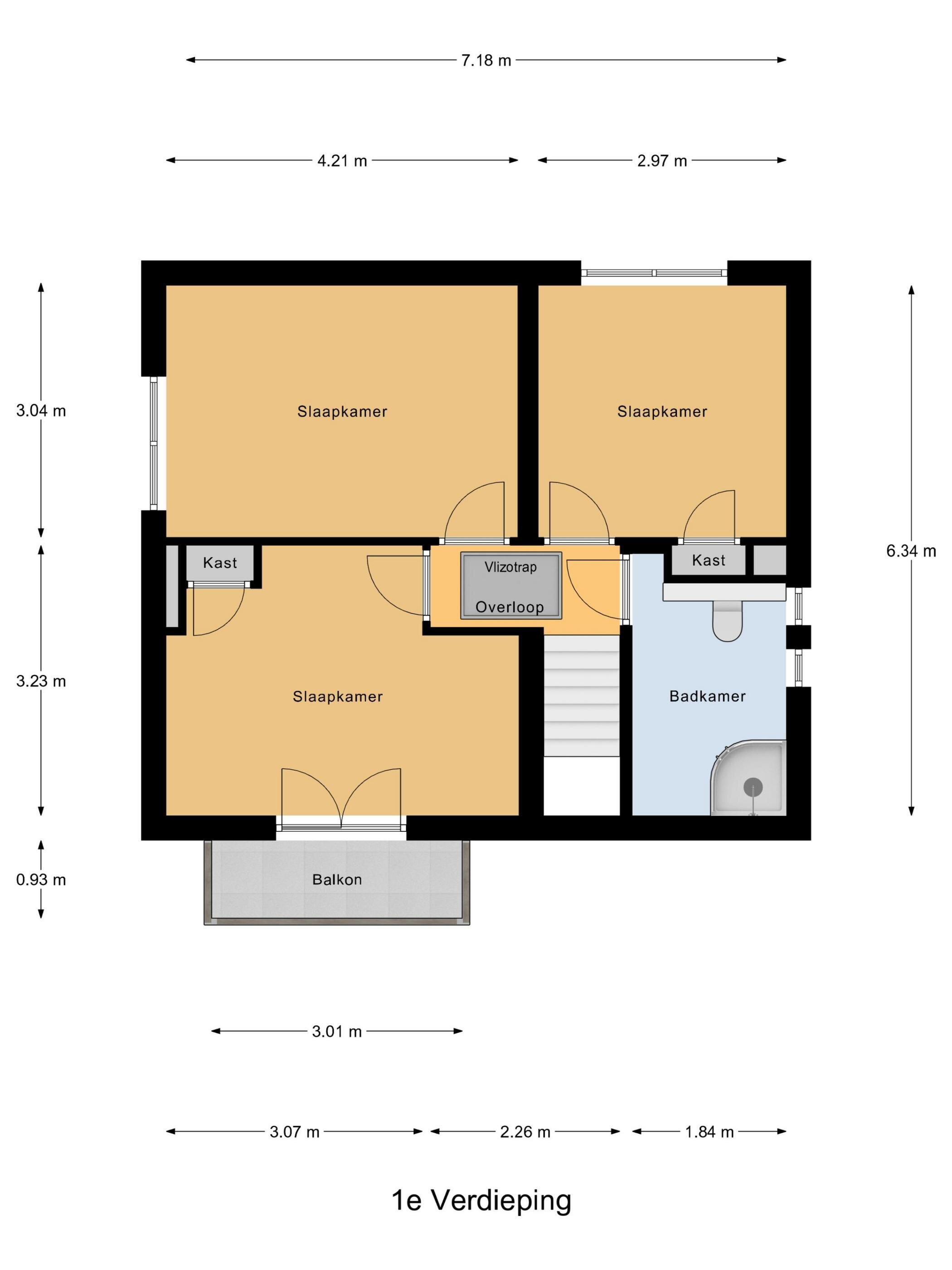 De woning beschikt over 3 slaapkamers: