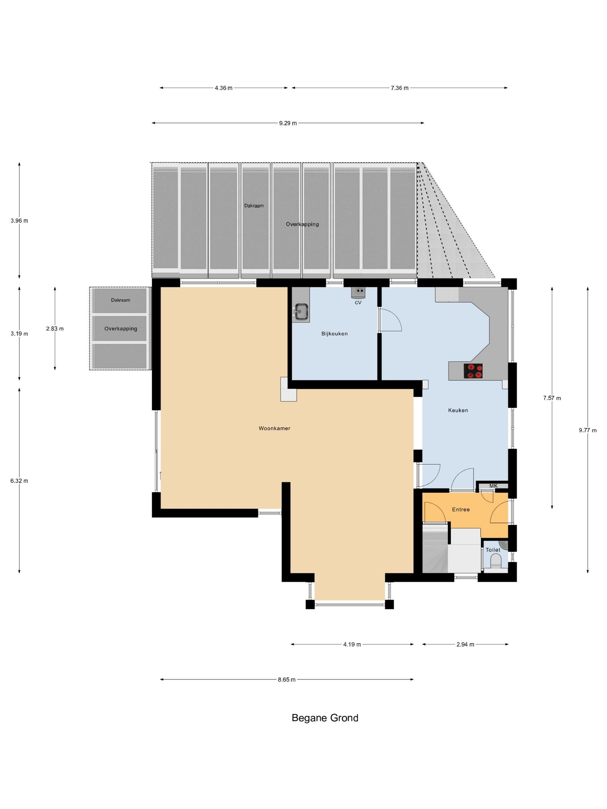 Alle opgegeven maten, oppervlakten en inhoud zijn indicatief en gebaseerd op een meetrapport conform de BBMI (Branche Brede Meetinstructie), welke is gebaseerd op de NEN 2580. Verschillen in meetuitkomsten kunnen voorkomen door interpretatieverschillen, afrondingen of beperkingen van de meetmethode.