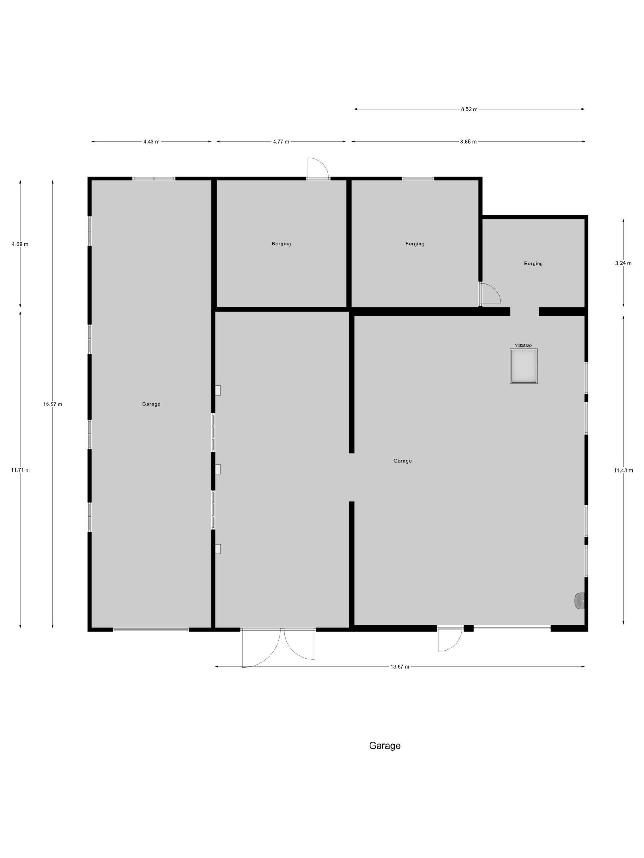 Zeer ruime garage met meerdere compartimenten