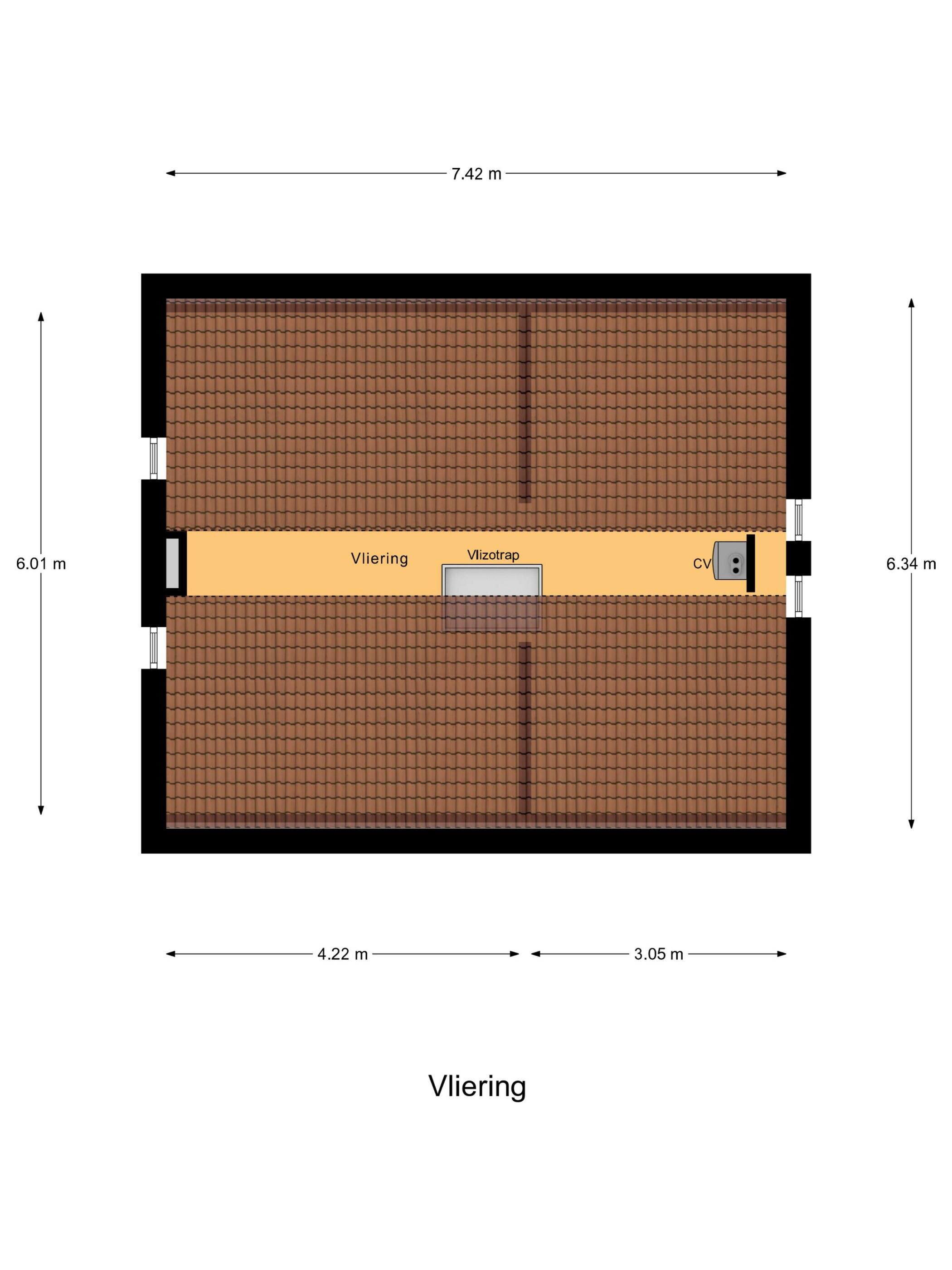 Bereikbaar via een vlizotrap, geschikt als bergruimte.